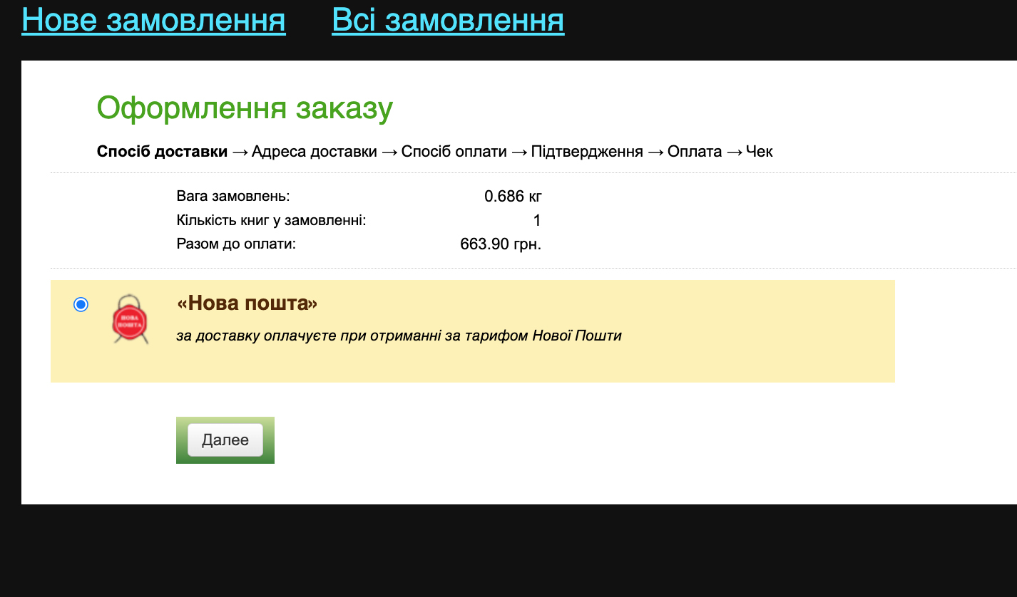 Далі проходимо стандартні кроки у оформленні замовлення (або групи замовлень): адреси, оплати, способи доставки тощо.